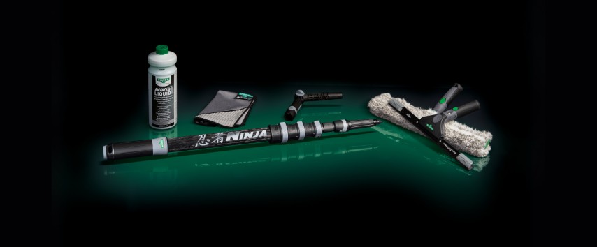 Zestaw do czyszczenia okien UNGER Ninja Carbon składający się z: ściągaczki do okien, wkładu myjącego ze stelażem, kija teleskopowego oraz ściereczki i płynu. Jest skierowany do profesjonalistów o największych wymaganiach. Tutaj znajdziesz produkty, których wysoką jakość wykonania można zobaczyć i poczuć na co dzień.