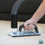 KROK 2: Zakończ, używając ssawy SOS i podłącz ją do ekstraktora lub odkurzacza sucho/mokro, aby odessać roztwór i zanieczyszczenia z dywanu.